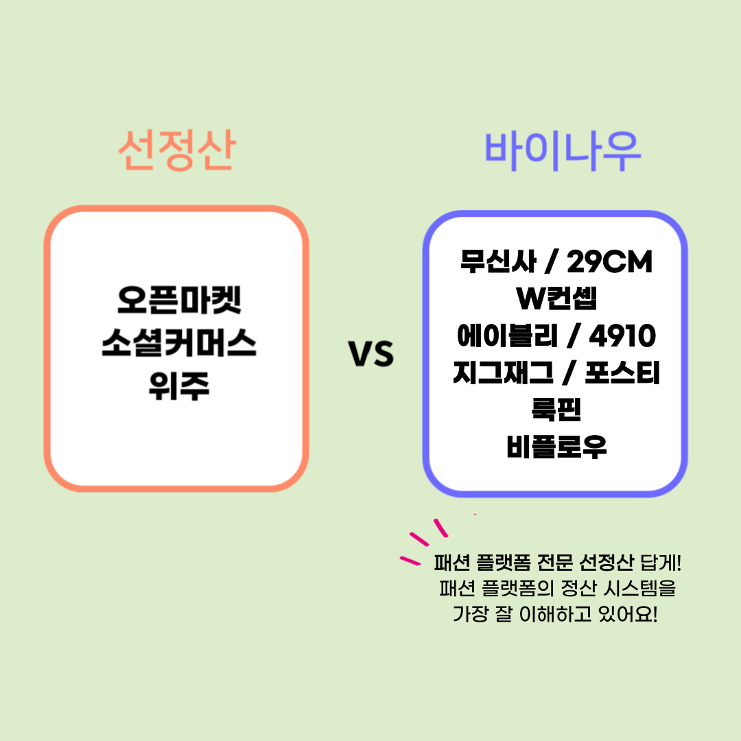 셀러님들께서 많이 비교하고 계신 타 선정산 서비스와 바이나우는 무엇이 다를까요?